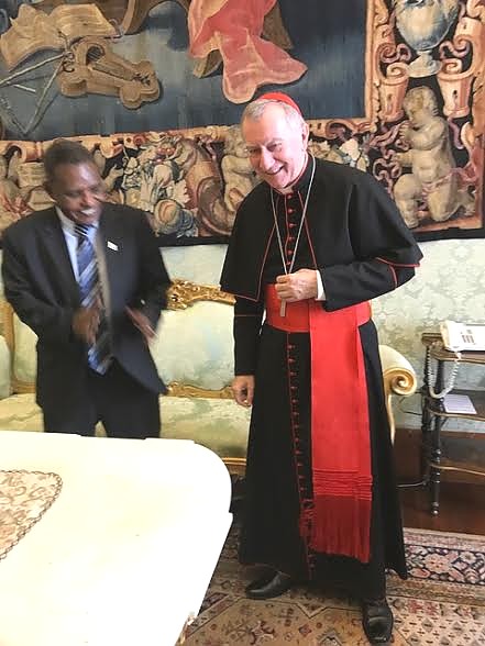 Balozi wa Tanzania nchini Ujerumani aliyemaliza muda wake Philip Marmo akiagana jana na Mkuu wa Utawala, Vatican (Secretary of State), Mhadhama Kardinali Pietro Parolin, balozi Marmo alikuwa anatumikia nchi 10 ikiwemo Vatican.