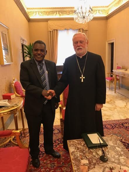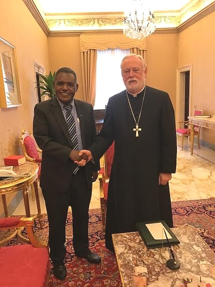 Balozi wa Tanzania nchini Ujerumani aliyemaliza muda wake Philip Marmo akiagana jana na Mkuu wa Utawala, Vatican (Secretary of State), Mhadhama Kardinali Pietro Parolin, balozi Marmo alikuwa anatumikia