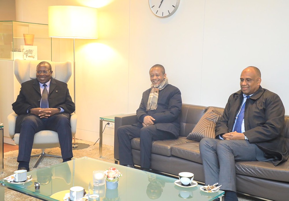 Mhe. Dkt. Philip Isdor Mpango, Makamu wa Rais wa Jamhuri ya Muungano wa Tanzania akiwa na Mhe. Balozi Mbarouk Nassor Mbarouk (Mb), Naibu Waziri wa Wizara ya Mambo ya Nje na Ushirikiano wa Afrika Mashariki Pamoja na Mhe. Hassan Iddi Mwamweta, Balozi wa Tanzania nchini Uswis mwenye makazi yake Berlin, Ujerumani mara baada ya kuwasili katika uwanja wa ndege wa Zurich